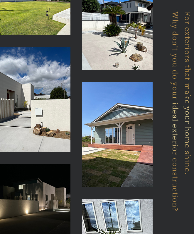 お住まいの美観を高めるだけでなく、生活を豊かにする外構をともに考え、形にしましょう。お客様一人ひとりの夢を形にするため、最新のデザインと実用性を兼ね備えた外構をご提案します。美しい庭・機能的な門扉・広々とした駐車場など、お客様の理想を叶える外構で、快適な毎日を実現いたします。