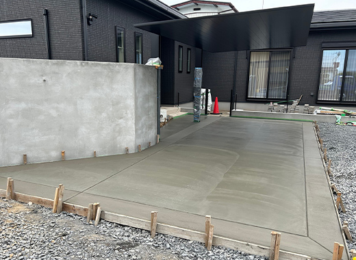 土間コンクリートは、主に駐車場やアプローチなどの舗装に使用されるコンクリートの施工方法です。
